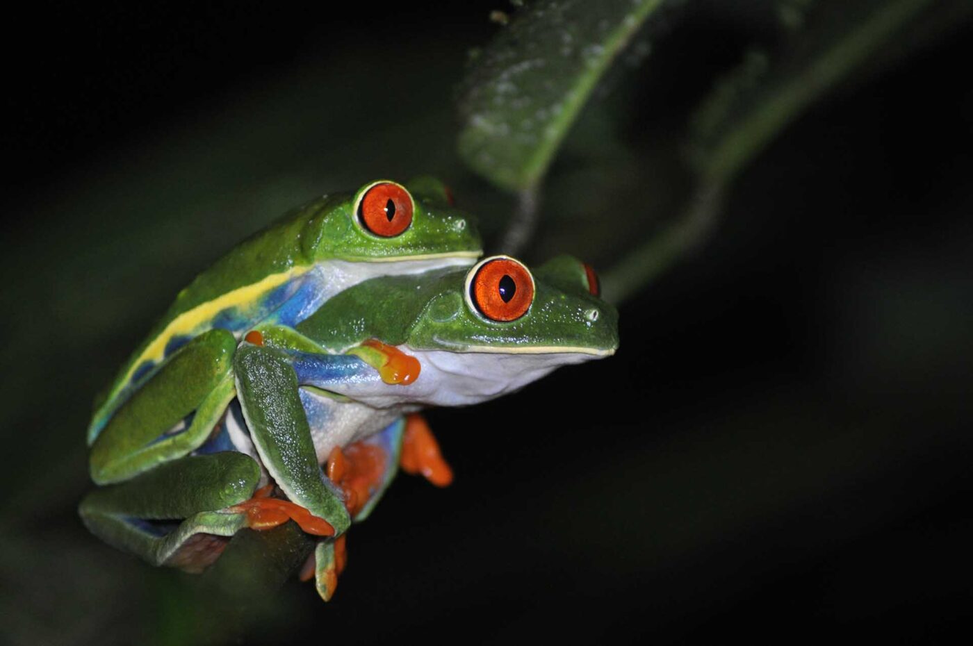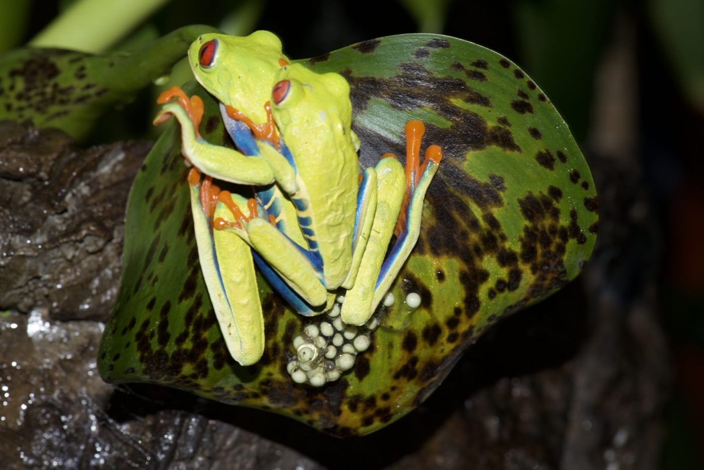 Rotaugenlaubfrösche sind Amphibien; ein Wort, das auf das altgriechische Amphibios zurückgeht, was soviel bedeutet wie „ein Doppelleben führen“, nämlich eins als Kaulquappe im Wasser und eins als Frosch an Land.