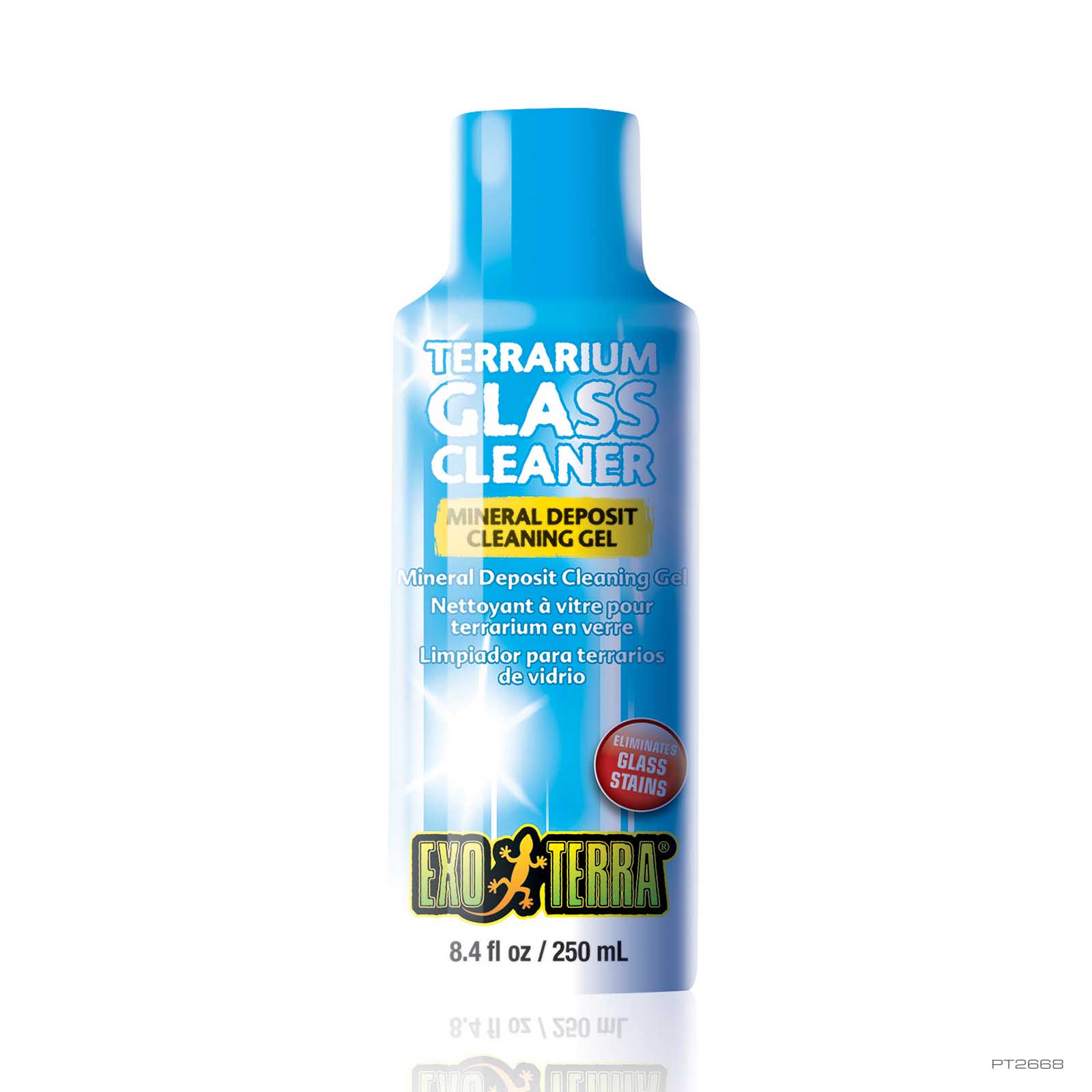 Der Exo Terra Terrarienglasreiniger ist ein einfach anzuwendendes Gel, das speziell für die Entfernung von Kalzium- und Kalkablagerungen von Terrarienglas entwickelt wurde. Leitungswasserspritzer sind der Hauptgrund für unansehnliche Flecken in Terrarien. Hartnäckige Kalziumablagerungen, die durch Befeuchtungssysteme wie z.B. den Exo Terra Monsoon RS400 entstehen, können mit dem Exo Terra Terrarienglasreiniger einfach entfernt werden. Die ungiftige Zusammensetzung des Exo Terra Glasreinigers ist vollständig FREI von Ammoniak, Alkohol, Farbstoffen, Duftstoffen und Petrochemikalien.