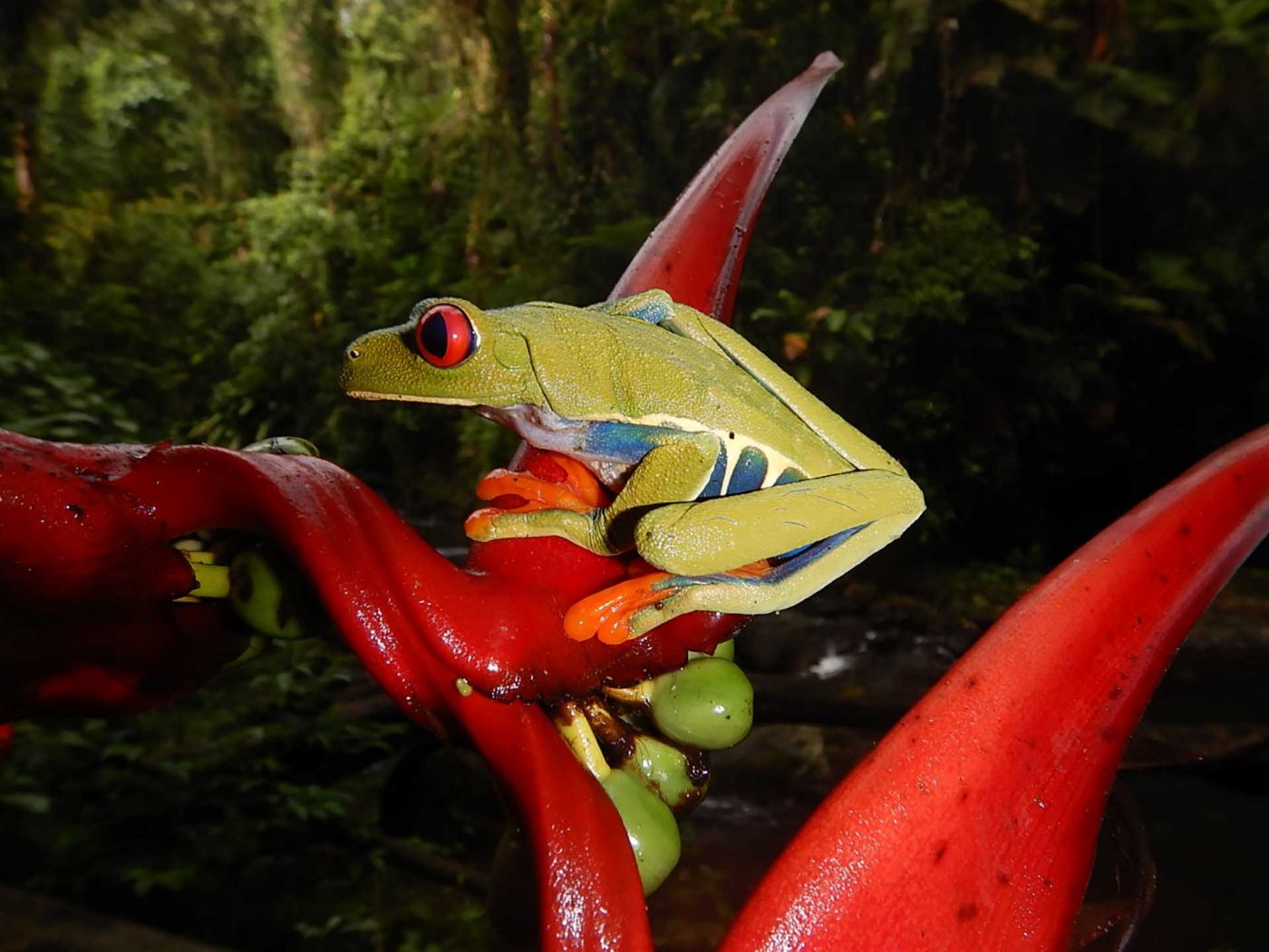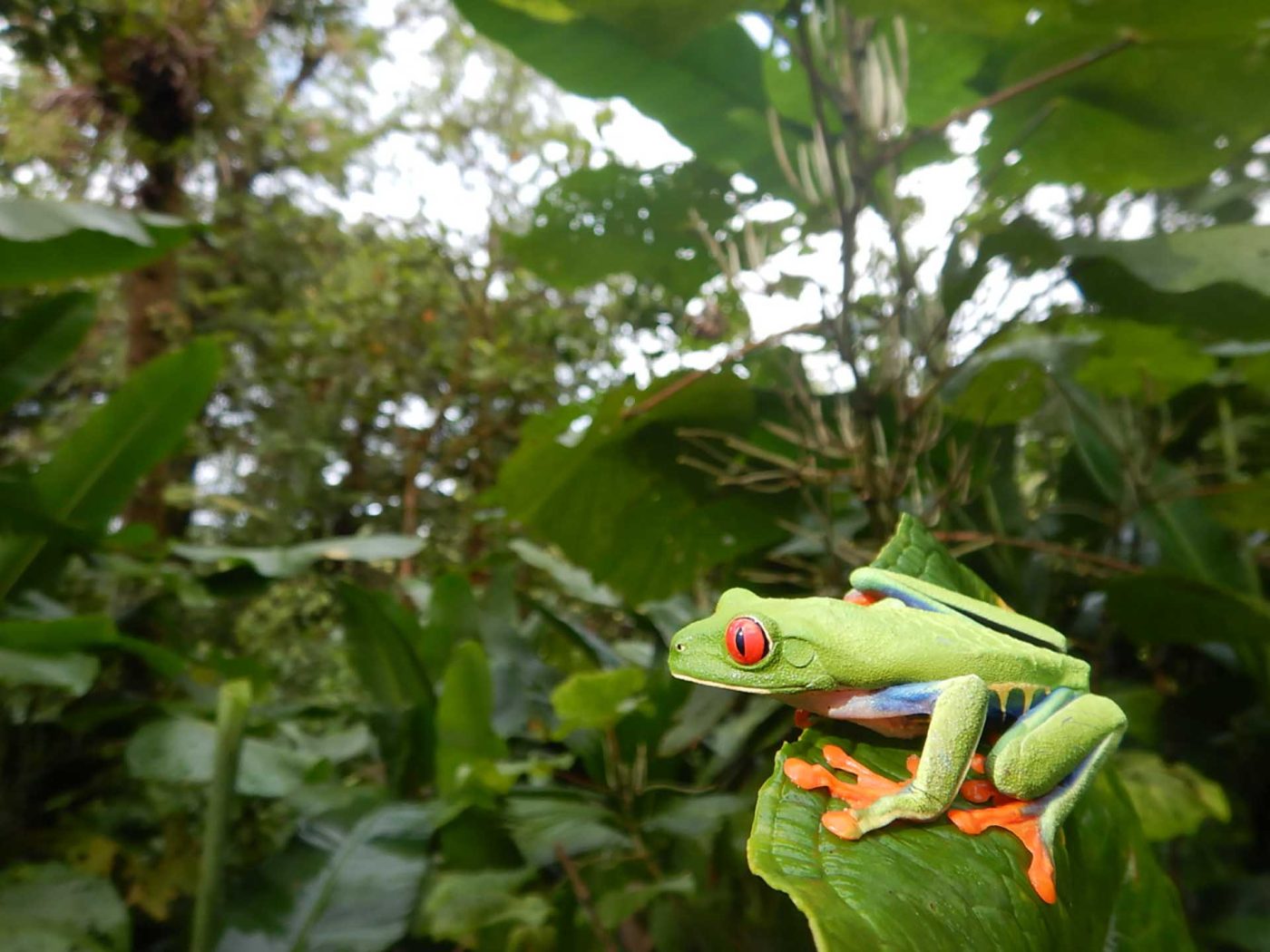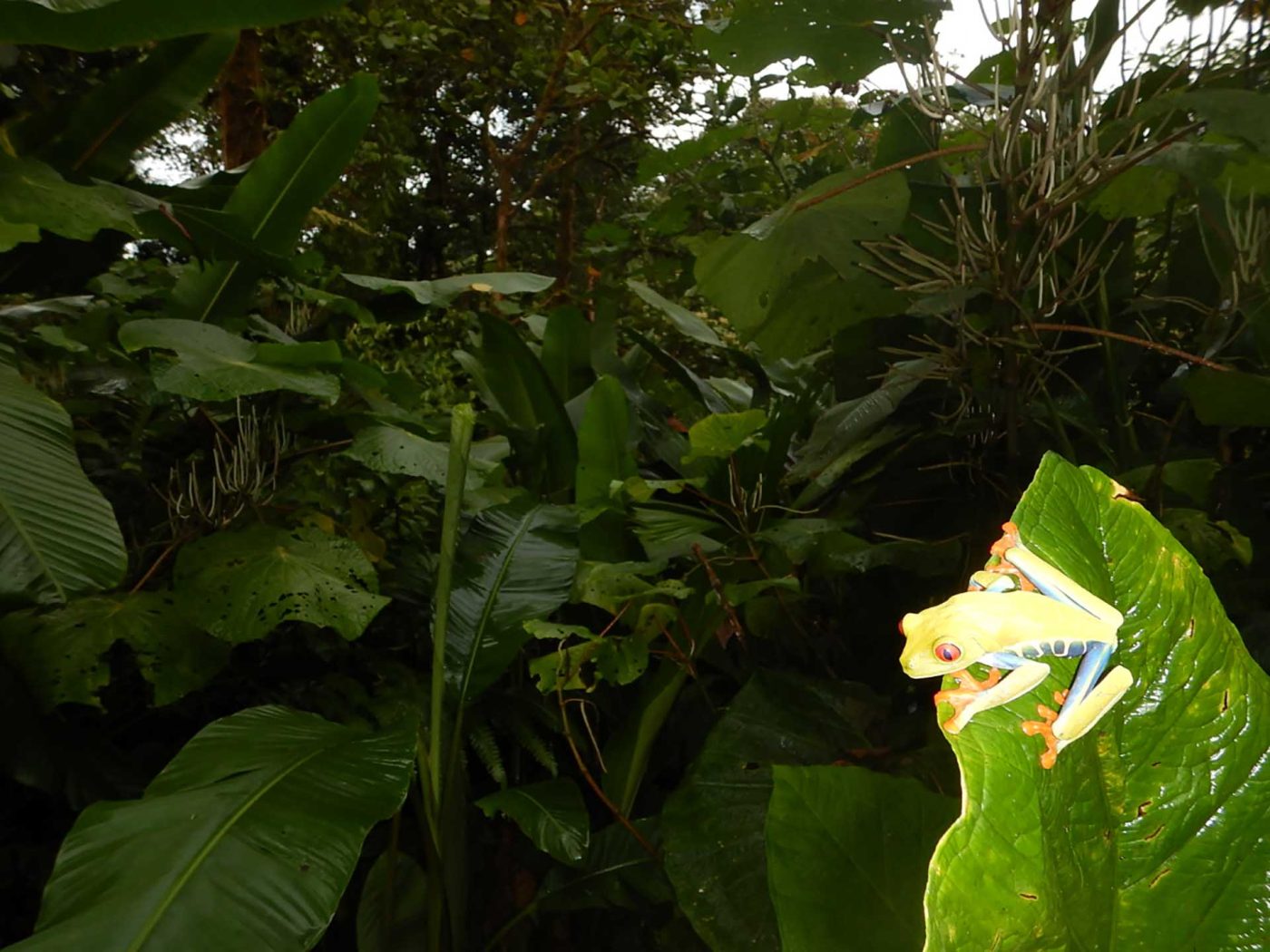 Red-Eyed Tree Frogs are both crepuscular and nocturnal, they sleep on the back of larger leaves in the shrubs during daytime and start foraging the shrubs at night to feed on insects.