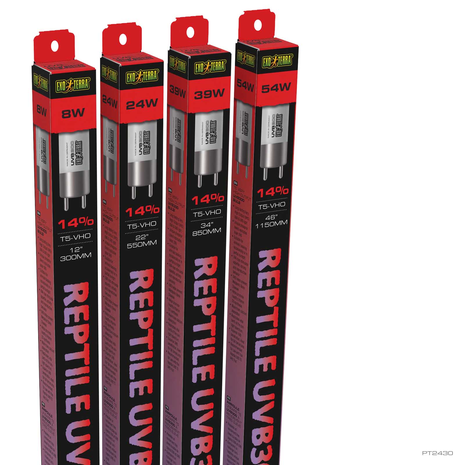 Les ampoules T5 Reptile UVB Exo Terra sont conçues pour fournir une émission de rayons UVB suffisante et biologiquement efficace pendant une période allant jusqu’à 12 mois. Elles offrent une solution fiable et écoénergétique pour les soins à long terme des reptiles. Spécialement conçues pour s’intégrer parfaitement aux couvercles d’éclairage T5 Exo Terra et pour convenir aux appareils pour ampoules fluorescentes T5 standards, ces ampoules offrent polyvalence et commodité à tout aménagement de terrarium. Leur rendement fiable et leur qualité exceptionnelle en font un composant essentiel pour la création d’habitats optimaux comblant les divers besoins des reptiles.