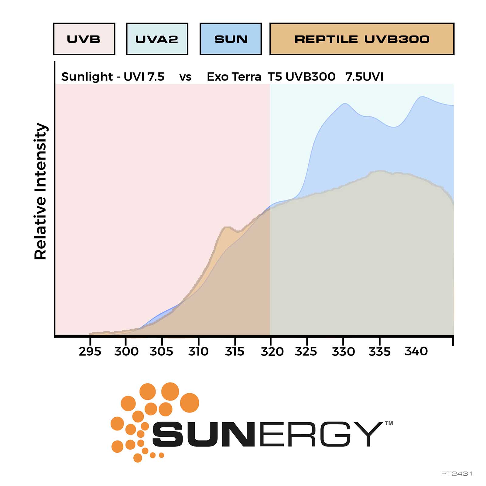 Ce qui distingue les ampoules T5 Reptile UVB des autres est le mélange luminophore SunergyMC de pointe et exclusif, fabriqué avec la technologie de précision allemande pour reproduire l’énergie du soleil, notamment dans le spectre UV. Reproduisant la lumière du soleil mieux que n’importe quelle autre ampoule sur le marché, le mélange SunergyMC est conçu pour répondre aux plus hauts standards en offrant qualité et performance inégalées. Grâce à ce mélange, les ampoules T5 Reptile UVB Exo Terra permettent de fournir les rayons UVB nécessaires pour la santé, la vitalité et les comportements naturels des reptiles.