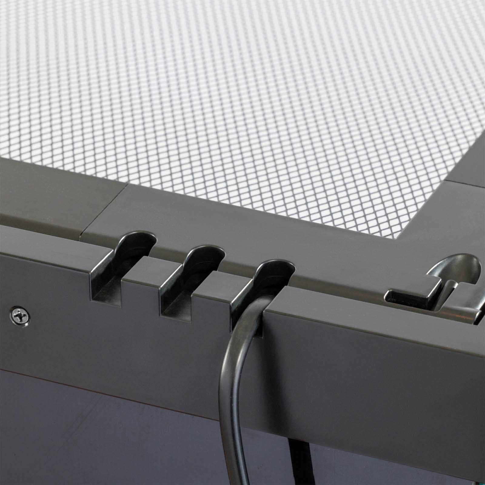 Le terrarium Vista est muni de trois passe-câbles à fermeture automatique pour les fils et tuyaux de chaque côté à l’arrière, ce qui facilite l’installation de différents Accessoires dans l’habitat. De plus, il comprend des points de fixation pour les becs du brumisateur Monsoon, simplifiant ainsi l’installation du système de brumisation automatique.