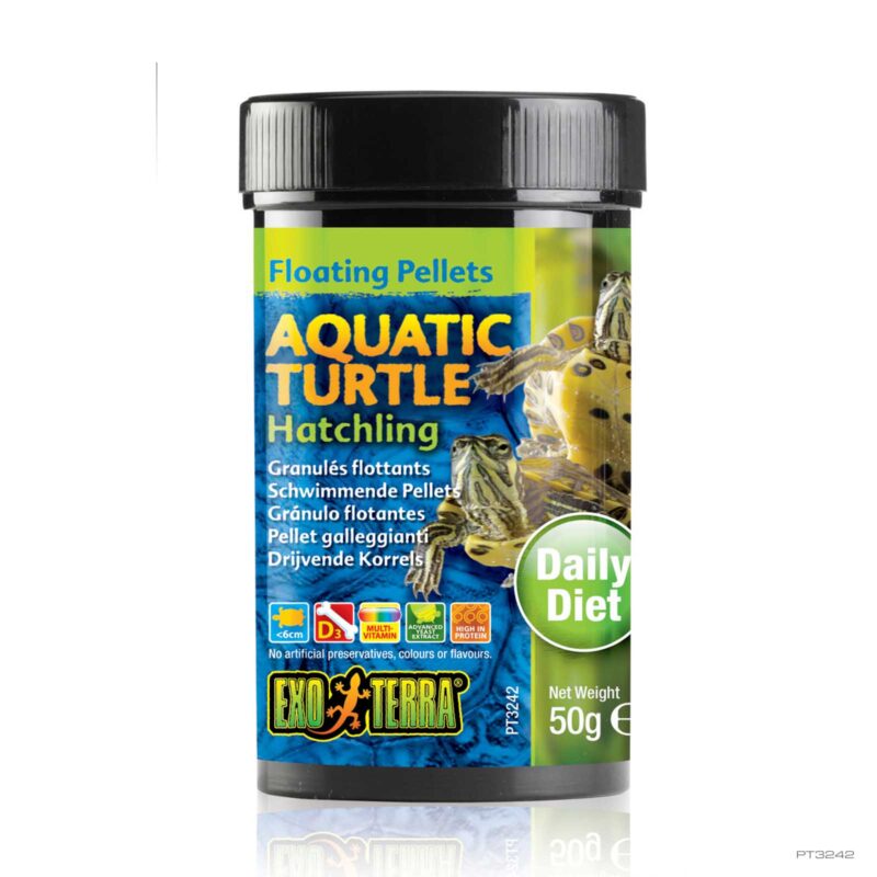 Exo Terra Aquatic Turtle Hatchling food is a nutritious daily food for hatchling aquatic- and semi aquatic turtles such as red-eared sliders, map turtles, wood turtles, etc.